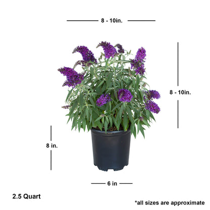 Invite the butterflies to your garden with this super compact, heat-loving butterfly bush. Butterfly Candy Li’l Grape™ will bring a splash of fragrant purple blooms to your garden this spring to fall. Plant these easy-care shrubs for all of your favorite pollinators, and they will not be disappointed! Mature size: 2-3' tall and wide. Deer resistant.